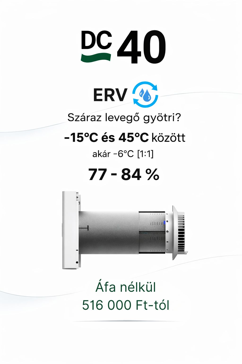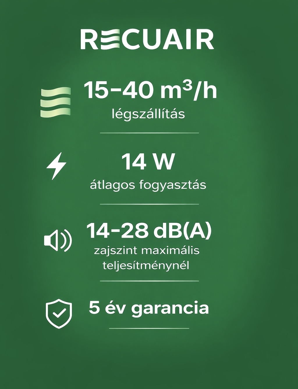 A RECUAIR DC40 HRV egy korszerű, energiatakarékos megoldás, amely